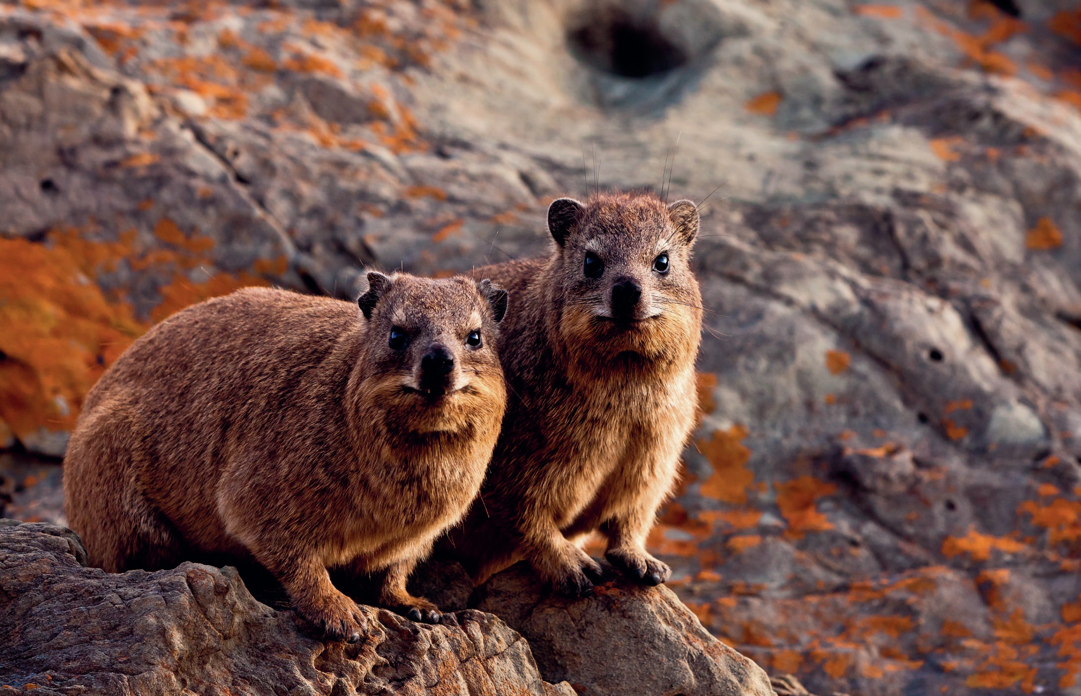 Superficially, hyraxes look like rabbits and rodents. Their shape, colour and size resemble those of a marmot or beaver. Humans have noted this similarity for a long time – the word ‘hyrax’ is derived from the word ‘shrewmouse’ in Greek. Hyraxes fall into three genera (see Box 1). The most common – rock hyraxes – typically live in harems, with young males leaving their families to set out alone and start their own community.